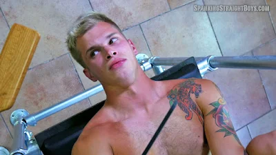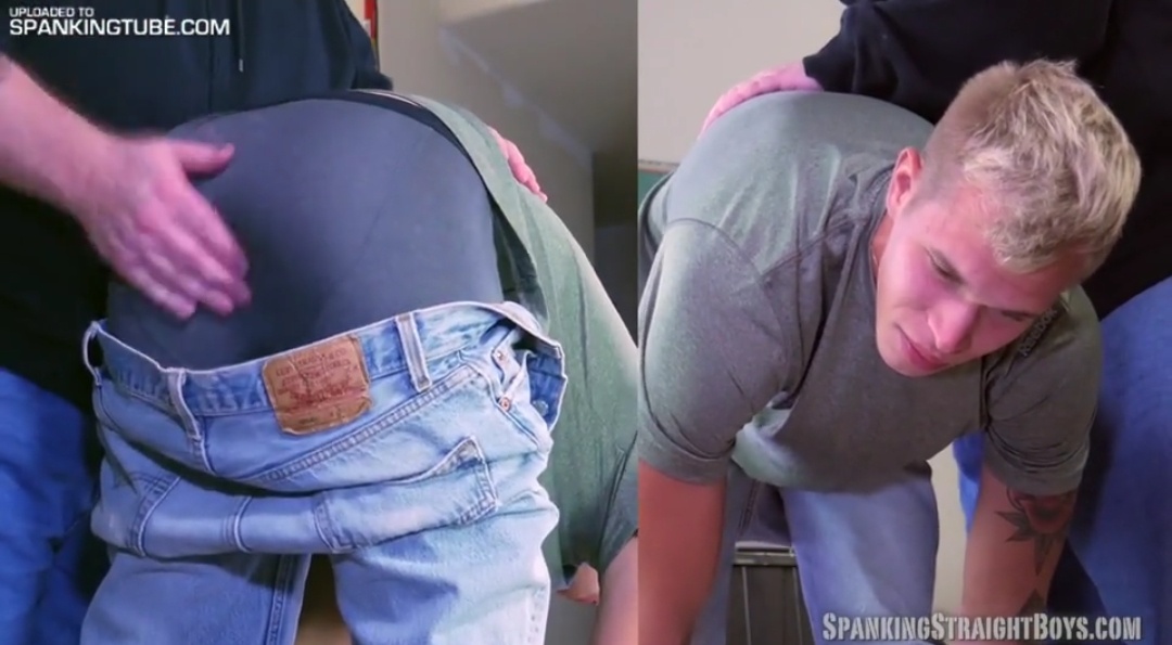 Clint is a 20-year-old straight boy and our newest model. This is his first-ever spanking. Tom puts Clint over his knee and begins to span...